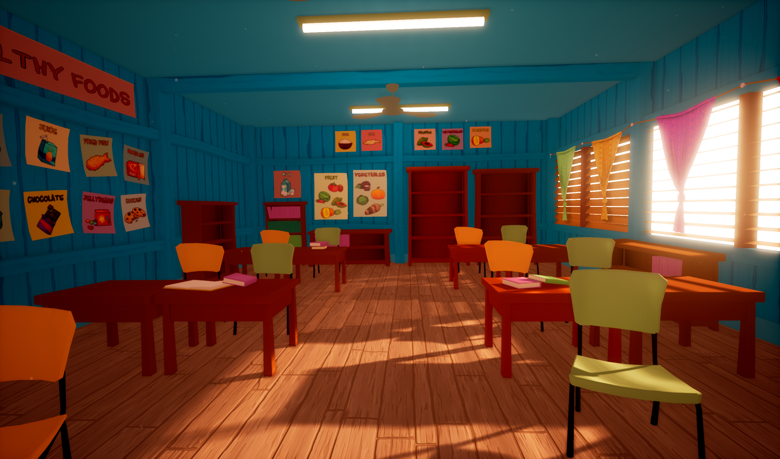 We created a VR experience as part of a health education program targeting kids across the Pacific Islands, combining curriculum, film, storytelling, and interactive games. I was the sole artist responsible for the entire VR component, developing the level design, shaders, lighting, and environmental art from scratch.